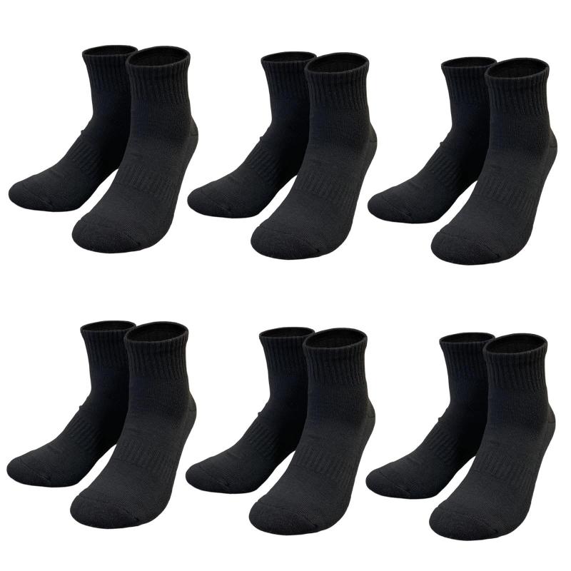 [PUICK] 6足組 底厚パイルソックス 靴下 学生用 23-25cm 25-27cm 27-29cm ミドル丈 ホワイト 黒 白 ブラック ショート丈 スクール ビジネス 学生中学生、高校生の通学、部活、スポーツにおすすめ くるぶし丈までの長さのショートソックス くるぶしが隠れるショート丈ソックス。 色とサイズが選べるお得な6足組ですクッション性があり衝撃軽減足底パイル仕様 足底にパイルを使用しているのでクッション性抜群 通学やスポーツなどの足底にかかる負担も、厚地氏底パイルが衝撃吸収で疲れにくい 厚地なので、破れにくく丈夫な靴下なので、毎日の学校での運動にも適しています激しい動きにもズレにくいサポート付き 足首と足の中間部分がサポート付きなので、激しい動きにも靴下がずれにくい 部活や体育の時にもズレずに、優しく足にフィットします毎日履く靴下だからこそ、同型同色で片方なくしても組み合わせができる嬉しい6足組 靴下によくある悩み、それは片方がなくなってしまったり、履けなくなってしまうとペアができなくなってしまうこと。 そんな悩みはもう解決です同型同色のセットなので、片方がなくなったり、履けなくなっても他の靴下で組み合わせ出来ます 朝の忙しい時や忙しくて洗濯できなかったなんて時も、6足組なのでストレスがなくなります。学校の校則にも適応無地のショート丈ソックス 中学や高校の校則に無地で白や黒という指定が多いようです。 そんな校則もクリアできるシンプルなデザイン。 もちろん学校用だけではなく、普段使いもできるので、男女問わず家族みんなで履くことも出来ますね素材:綿・ポリエステル・ポリウレタンサイズ:23-25cm/25-27cm/27-29cm