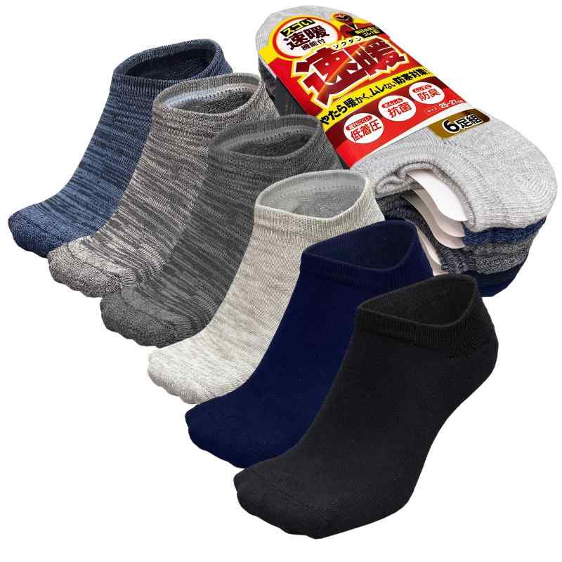 [PUICK] 6足組 靴下 メンズ 速暖 ショートソックス 抗菌消臭 疲れにくい低着圧 吸水速乾 ストレッチ 男性 春夏 秋冬 パイル くつした くつ下 ビジネス ランニング くるぶし 25-27cm