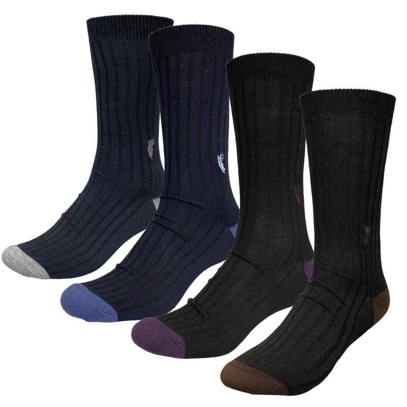 [PUICK] 4足組 靴下 メンズ ソックス 太リブ 丈長 クルー丈 ビジネス 通勤 男性 25-27cm 黒 濃紺 チャコール 秋冬