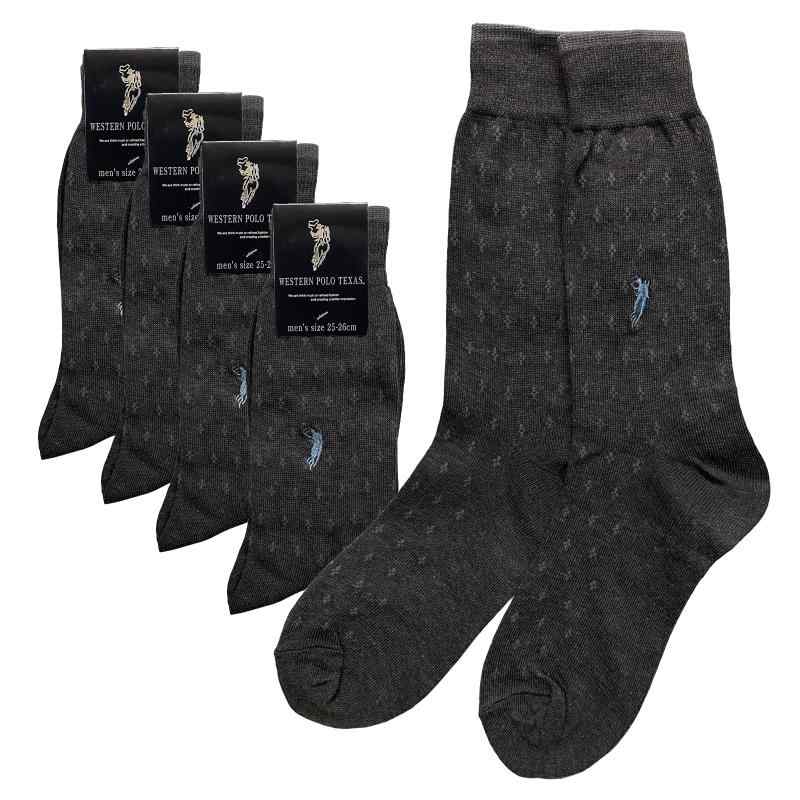 [PUICK] 4足組 靴下 メンズ ソックス 丈長 クルー丈 ビジネス 通勤 男性 25-26cm 黒 チャコール 秋冬 春夏 ワンポイント刺繍 サラリーマン