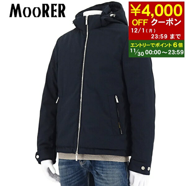 【11/30限定!ポイント6倍】 ムーレー MooRER メンズ ダウンジャケット ALBINI PUM ダークネイビー DARK BLU アルビニ ダウン アウター ダブルジップ ダブルファスナー フード取り外し可能 【2025秋冬新作】