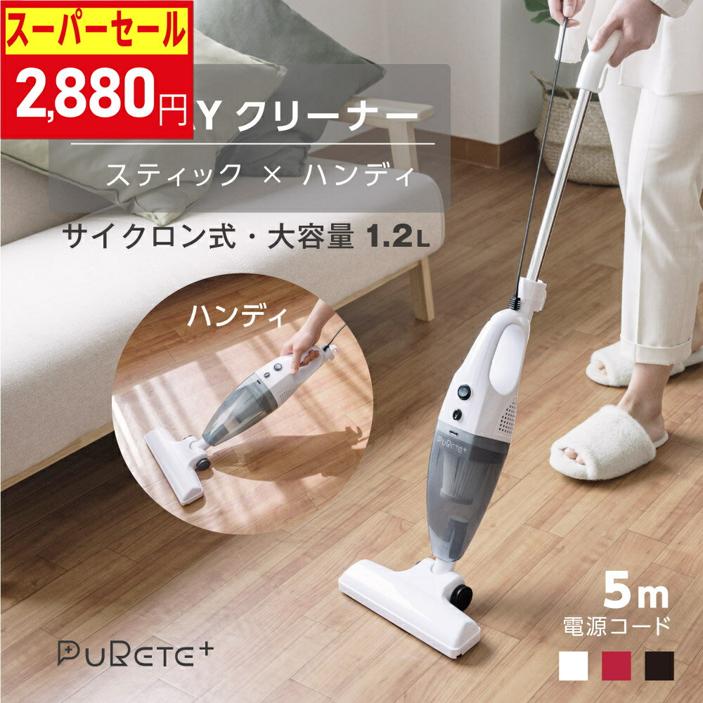 ★50台最安値挑戦クーポンで2,880円★掃除機 コード式 PURETE+ サイクロン 2WAY ハンディー クリーナー ハンディクリーナー サイクロン掃除機 母の日 スティック 一人暮らし サイクロン式 スティッククリーナー 新生活 軽量 軽い ef-e001