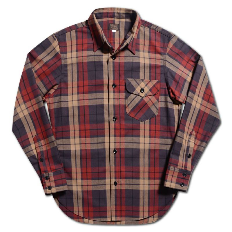 ※こちらの商品は店頭と在庫を共有しておりますので、売り切れの際は予めご了承下さいませ。 【DELUXEWARE/デラックスウエア】長袖シャツ/MV-13[ORIGINAL PURPLE CHECK] 濃いパープルカラーとレッドカラーが織りなす独自の配色は、ヴィンテージ感が有りつつも温もりを感じさせる色合い。 こっくりとした色合いとは裏腹に生地を触るとザラ感があり、16番と8番空紡糸で織り上げたドライなミディアムネル素材は”軽くて丈夫”は勿論のこと、無起毛素材のため室内で着用しても暑すぎることがありません。 年間を通して使えるネルシャツとなっておりますので、使い勝手も幅広く扱いやすさも抜群です。 LOT:MV-13[ORIGINAL PURPLE CHECK] 素材:COTTON 100% カラー:RED.PUR サイズ:M,L,XL SIZE 身丈 身幅 裄丈 肩幅 M 69.0cm 53.5cm 60.0cm 44.5cm L 71.5cm 56.0cm 61.5cm 45.5cm XL 73.0cm 58.5cm 62.5cm 46.5cm【DELUXEWARE/デラックスウエア】 長袖シャツ/MV-13[ORIGINAL PURPLE CHECK]