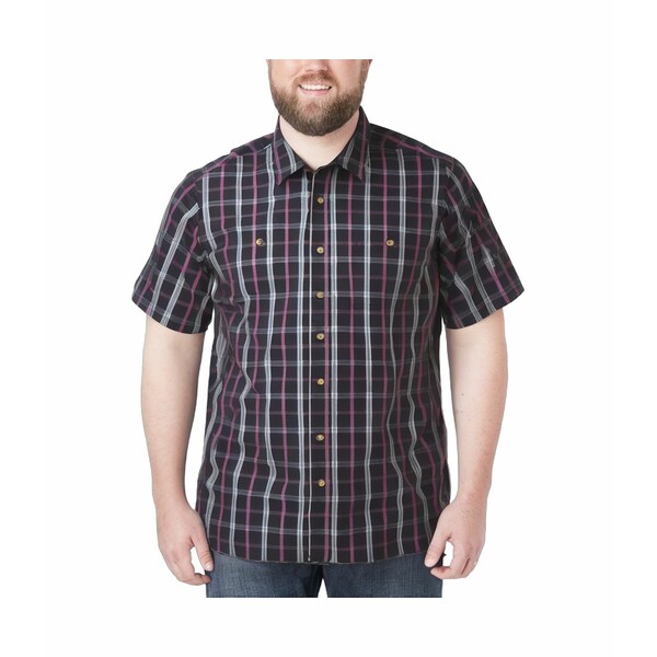 キングサイズ メンズ シャツ トップス Big & Tall Wrinkle-Resistant Short Sleeve Button Down, Printed Dark purple check