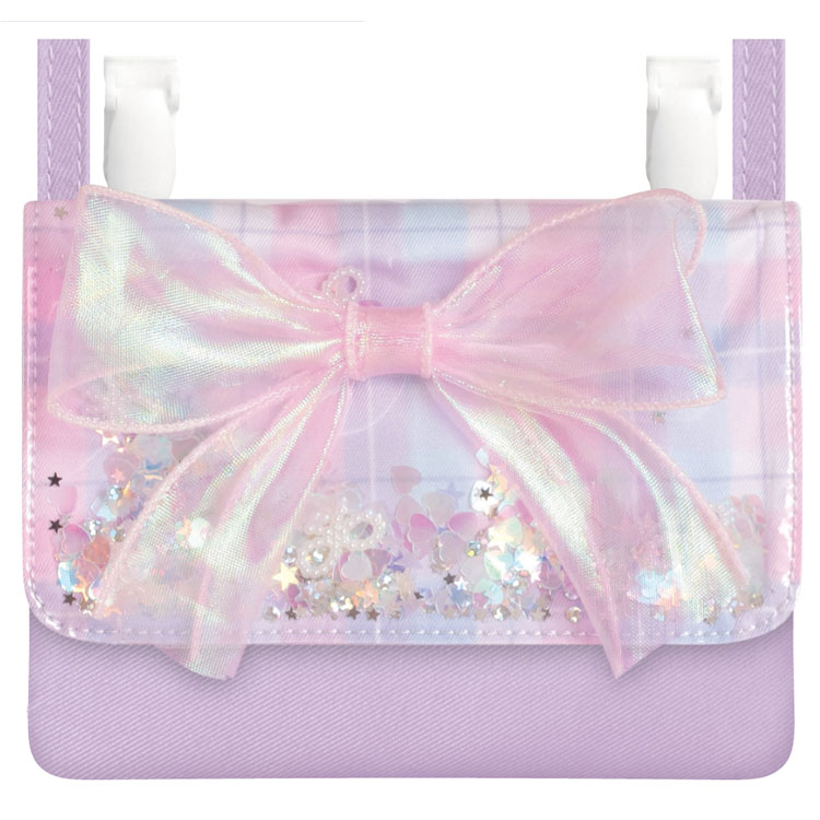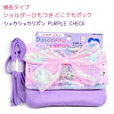 横長タイプ ショルダーひもつき どこでもポッケ 【シャカシャカリボン/PURPLE CHECK】 オーロラオーガンジーリボン 株式会社カミオジャパン チェック リボン ポシェット パープル
