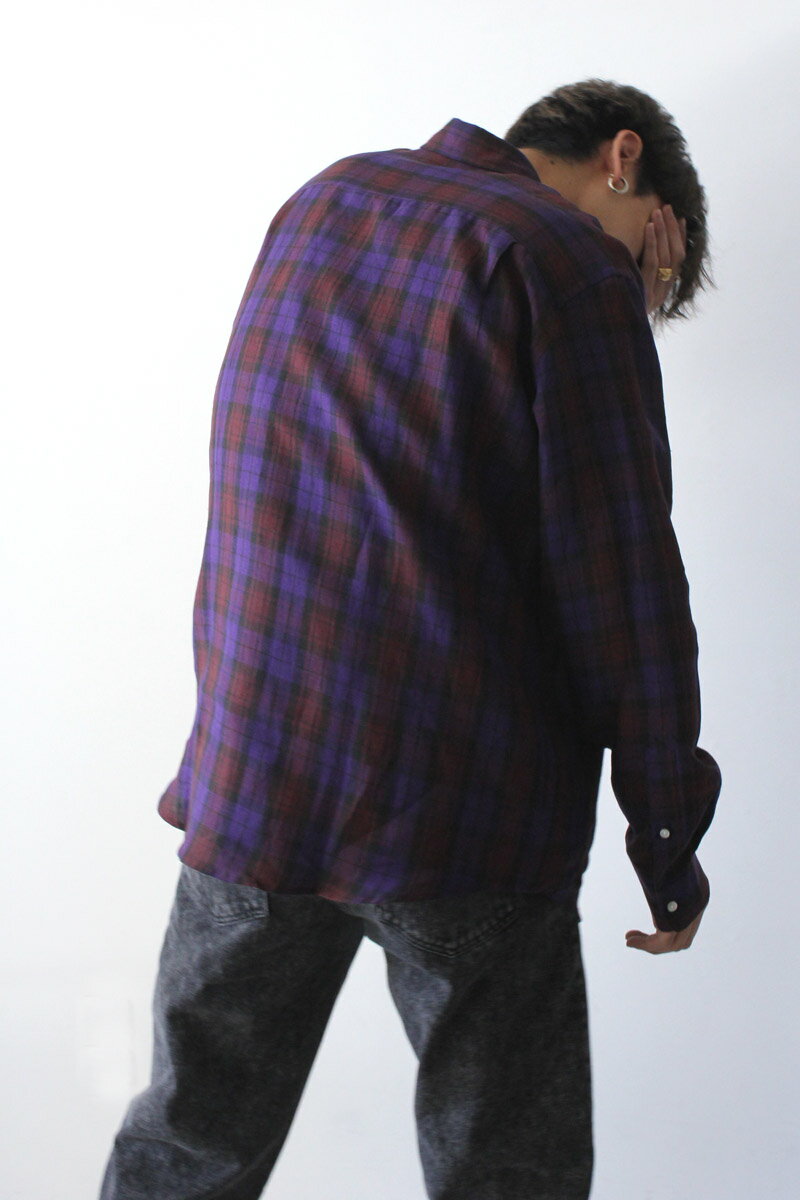 THE SMOKER'S CLUB PURPLE CHECK L/S T-SHIRT (PURPLE)ザ・スモーカーズ・クラブ/ロングスリーブティーシャツ/パープル