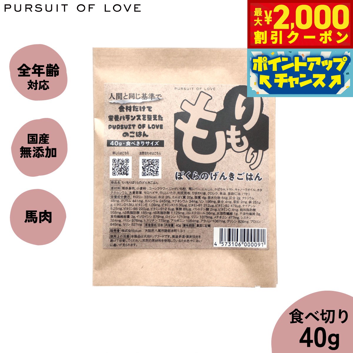 【最大2000円OFFクーポン!&店内ポイント最大52倍!本日限定!】【レビュー特典あり】PURSUIT OF LOVE もりもり ぼくらのげんきごはん 食べきりサイズ 40g