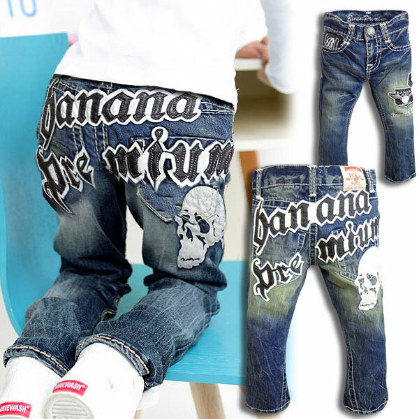 NEW YORK PAPA 立体裁断 プレミアム スカル レザー 刺繍 デニム パンツ ジーパン ジーンズ ボトムス ズボン 長ズボン 無地 男の子 キッズ ジュニア 子供 小学生 おしゃれ かっこいい 着回し 合わせやすい シンプル 100 110 120 130 140 150 160 春 夏 秋 冬