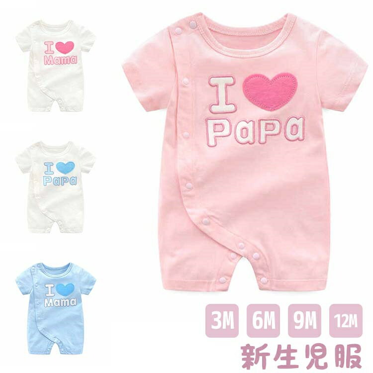 送料無料 ロンパース カバーオール ベビー服 I love mama papa 前開き 可愛い 柔らかい 女の子 男の子 ウエア 夏