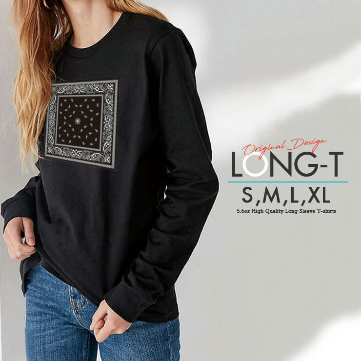 Tシャツ ロンT クルーネック 丸首 綿 長袖 カットソー メンズ レディース バンダナ柄 バンダナ ペイズリー paisely 男女ペアでも使えるコーデ幅の増えるシンプルロンTです!!