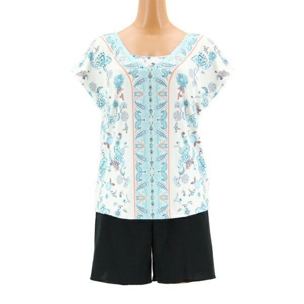 アイ(水着)のSarasa Paisely タンキニ4点セット[型番:55589-8168]優しい色合いのタンキニボトムの4点セット、13号サイズ。襟から胸元にかけてアクセントのあるトップスは上品さUP。インナーのトップスはタンキニタイプなのでストレス無く着用できます。スムース素材のショートボトムは動きやすく集めの素材で安心感があります。すっきりアウター間隔で着用して頂けます。■カラー:ホワイト(01)、ブルー(80)、ネイビー(82)カバーアップ 13L 着丈55cm 身幅50 ショートPT ウエスト85cm ヒップ108cm※( )で表記されている数字はヌードサイズです。ヌードサイズとは衣服を身につけない身体のサイズです。お客様ご自身の身体サイズと比較してお選びください。 ■素材: 水着 ポリエステル ポリウレタン カバーアップ ポリエステル ポリウレタン パンツ ポリエステル ■お手入: 手洗い >>商品のお取り扱い方法 ■原産国:Sarasa Paisely タンキニ4点セット/アイ(水着)(Ai)ホワイト(01)ブルー(80)ネイビー(82)画面上と実物では、多少色具合が異なって見える場合がございます。