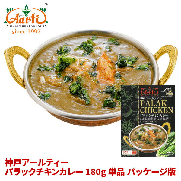 神戸アールティー パラックチキンカレー(ほうれん草チキン)180g 単品 ≪パッケージ版≫Palak Chicken Curry レトルトカレー ほうれん草 鶏肉 長期保存 常温保存 ギフト