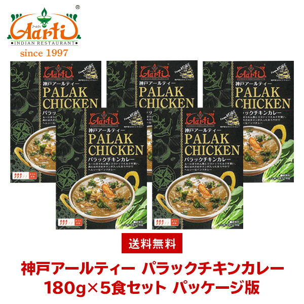 神戸アールティー パラックチキンカレー(ほうれん草チキン)180g×5箱 ≪パッケージ版≫ 送料無料Palak Chicken Curry レトルトカレー ほうれん草 鶏肉 長期保存 常温保存 ギフト まとめ買い セット商品