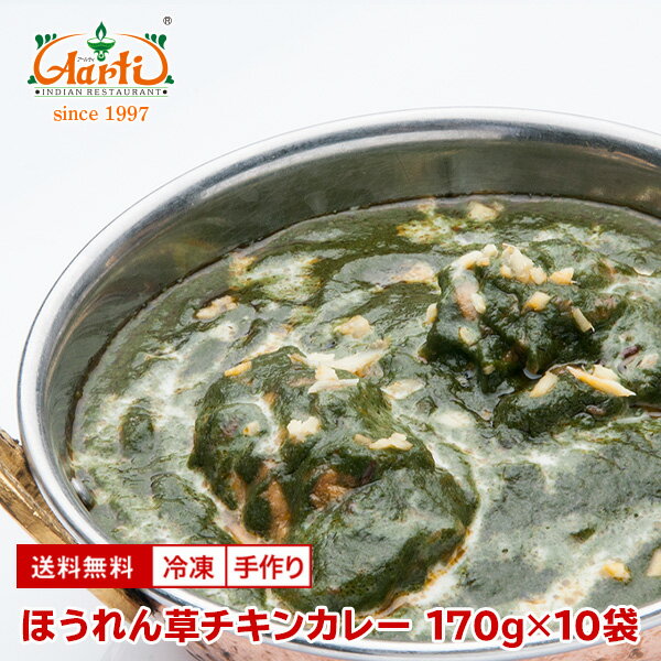 ほうれん草チキンカレー 170g×10袋 送料無料Palak Chicken Curry 鶏肉 野菜 インドカレー 冷凍