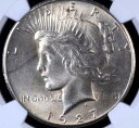 1927年ピースダラーNGC MS 62 淡いレモン色の銀サテンは滑らかでよく打たれています。