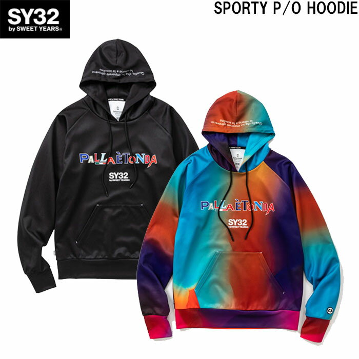 SY32 by SWEET YEARS エスワイサーティトゥバイスウィートイヤーズ SPORTY P/O HOODIE プルオーバーフーディー Palla e tonda 全面プリント ブラック S M L XL XXL