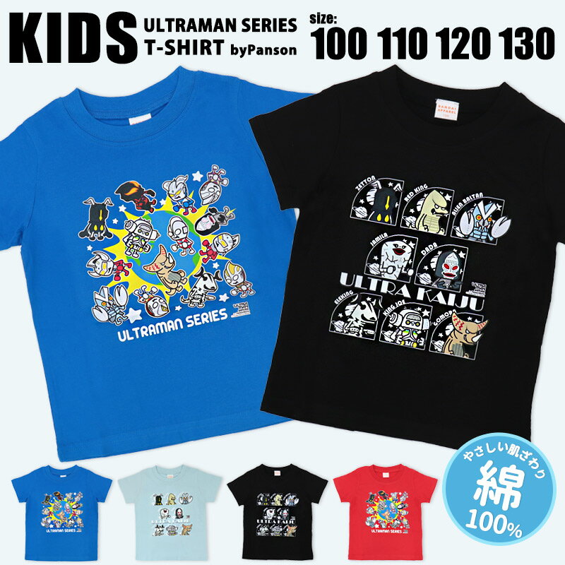 ウルトラマン tシャツ キッズ 半袖 Tシャツ 100 110 120 130 パンソン 綿100% 男の子 子供 服 子ども シンプル かっこいい カジュアル プレゼント 保育園 幼稚園 小学生 園児 キャラクター 男児 ブルー レッド サックス ブラック //メール便発送可
