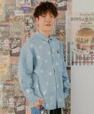 スカラーパリティー ScoLar Parity クマ 花柄 プリント ダンガリーシャツ サックス ブルー M トップス 綿 ポリエステル デニム 薄手 羽織 ユニセックス やや透け感有 おしゃれ かわいい 春 夏 カジュアル 長袖