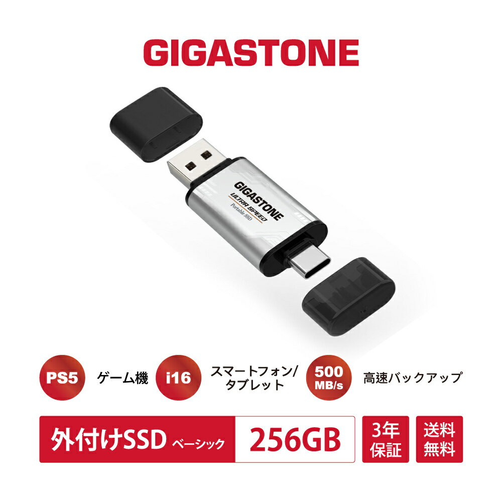 数量限定!【保証3年】【PS5/iPhone16対応】GIGASTONE 外付けSSD 256GB USB3.2 Gen2 最大500MB/s 高速ポータブルSSD 超小型・軽量 USB-C & USB-A搭載 MacBook / iPad / スマホ / ノートPC対応 ゲーム・動画編集・写真保存・データバックアップ 送料無料