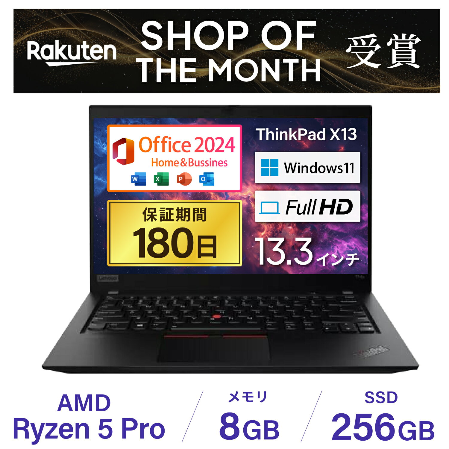 2024H&B|中古ノートパソコン Windows11 Microsoft Office 2024 H&B|Lenovo ThinkPad X13 Gen1|AMD Ryzen 5 PRO 4650U|メモリ 8GB ストレージ M.2 SSD 256GB|Core i5 第10世代 相当|Wi-Fi 無線 Bluetooth FHD 1,920×1,080 IPS 13.3インチ 薄型軽量|