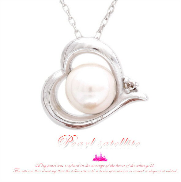 とらわれの大粒真珠と寄り添うダイヤ Pearl satellite K10ホワイトゴールド パール×天然ダイヤモンドオープンハートネックレス 発送目安:2~3週間 送料無料 プレゼント 秋冬 大人気