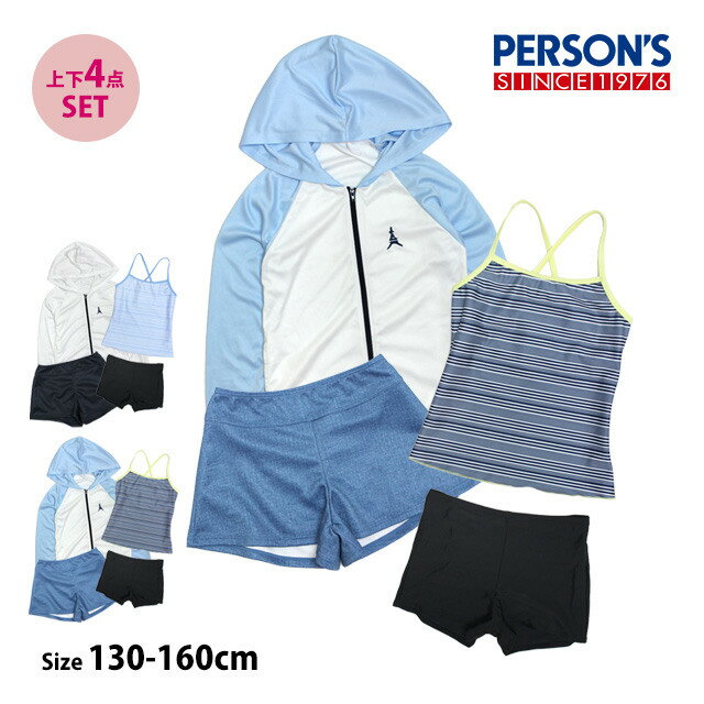 水着 女の子 キッズ ジュニア セパレート水着 PERSON'S パーソンズ 子供 ラッシュパーカー キュロット 4点セット 130cm 140cm 150cm 160cm