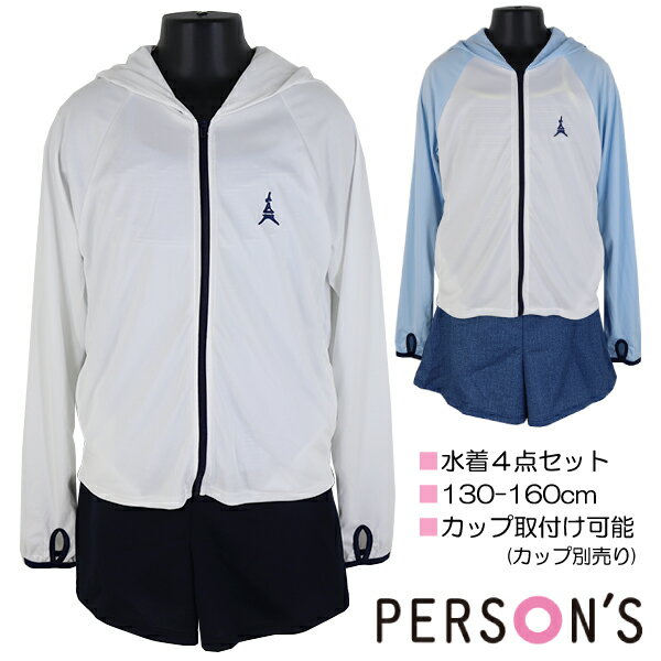 【半額以下 楽天スーパーSALE】水着 女の子 キッズ ジュニア セパレート水着 PERSON'S パーソンズ 子供 ラッシュパーカー キュロット 4点セット 130cm 140cm 150cm 160cm
