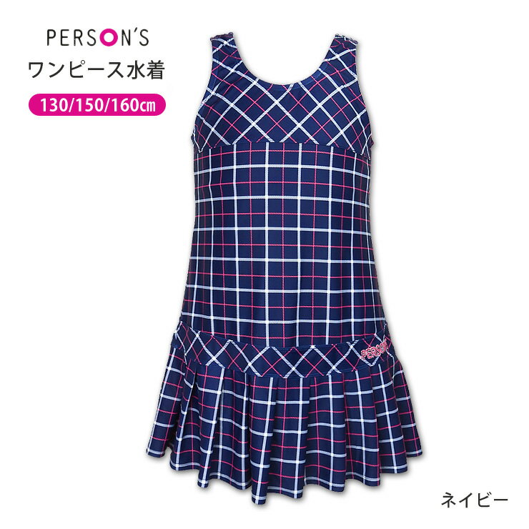 PERSON'S キッズ ジュニア 女児用 ワンピース 水着 130 150 160 パーソンズ 33951343 ミニスカート 子ども 女児 女の子 チェック柄 プリーツスカート 紺 ネイビー