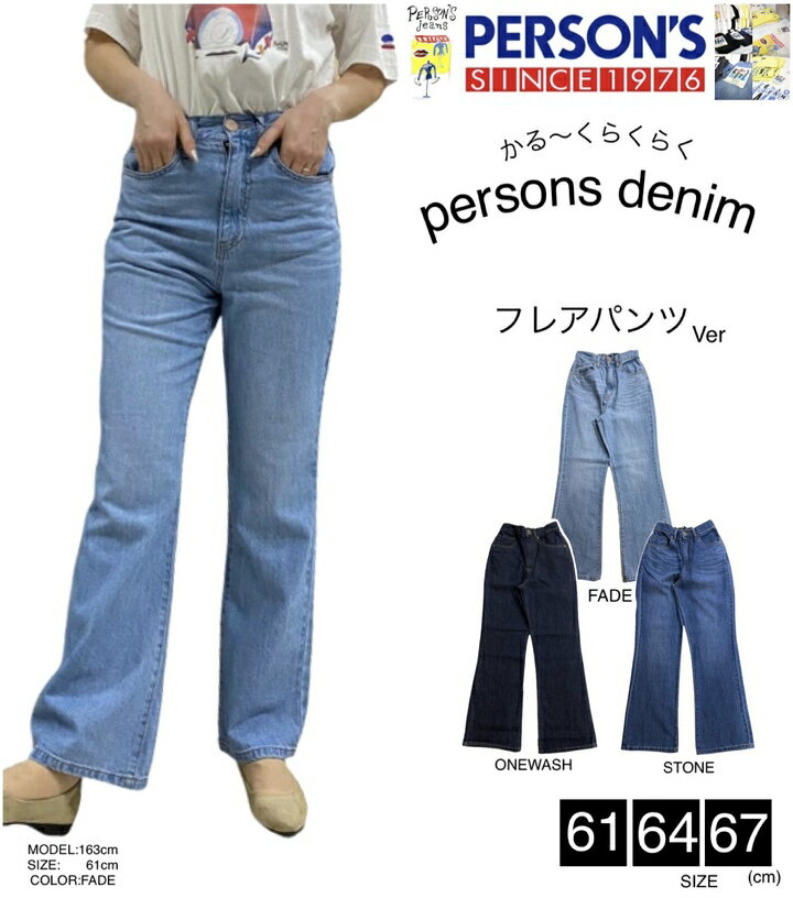 【PERSON's JEANS】パーソンズ OTONA フレア/激カワ/綿100%/フレア/懐かしい/1949年/創業/ジーンズ/ブランド/形/カジュアル/パンツ/美脚/裾広い/ストレスフリー/ウエストゴム/ベルト/おしゃれ/大人のパンツ/細見え/綺麗め/ボトムス/古着/レトロ/クラシック/大人気/トレンド/