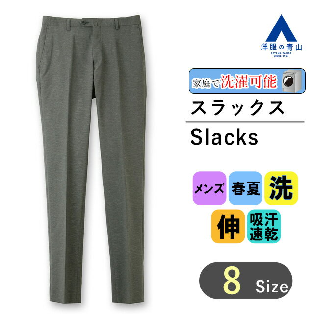 【洋服の青山】スラックス メンズ 秋冬 ノータック 細身体 スリム ウォッシャブル 家庭で洗える ストレッチ シワ抑制 グレー ビジネス カジュアル ビジカジ ジャケパン 紳士服 パンツ ズボン かっこいい おしゃれ PERSON'S FOR MEN