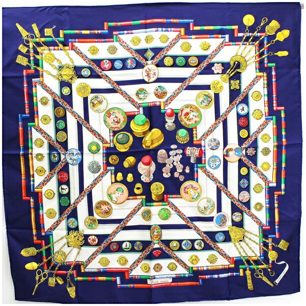 エルメス 未使用 シルク スカーフ カレ90 Petie main お針子さん ネイビー 中古 Sランク HERMES | レディース 女性 箱付き 【送料無料】