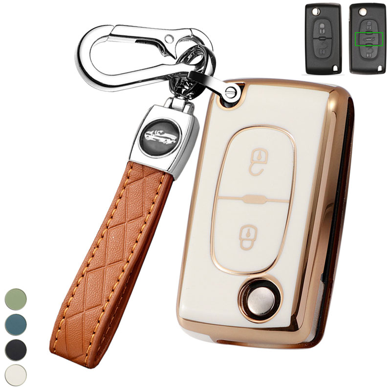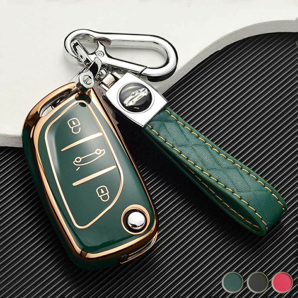 送料無料 ONTTO プジョー折畳式に適応 キーバック 全面保護 キーカバー 電気メッキ キーケース 可愛い キーホルダー シトロエン C1 C2 C3 C4 C5 C6 C8 クサラ 206 207 208 307 308等に適用 キーリング キーチェーン 弾力性 耐久性 汚れ防止 傷防止 防水 ユニセック 高品質TPU