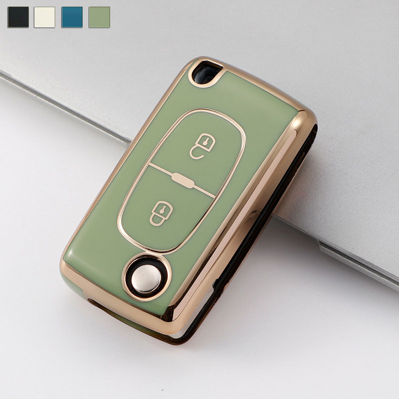 送料無料 ontto プジョー用 折りたたみ式 スマート キーケース 全面保護 キーカバー 電気メッキ キーホルダー Peugeot 207 307 308 Citroen C2 C3 C4 C5 C6 C8等に適用 車用 高級感 リモコンキーカバー 弾力性 耐久性 高品質 TPU シリコン 汚れ防止 傷防止 防水