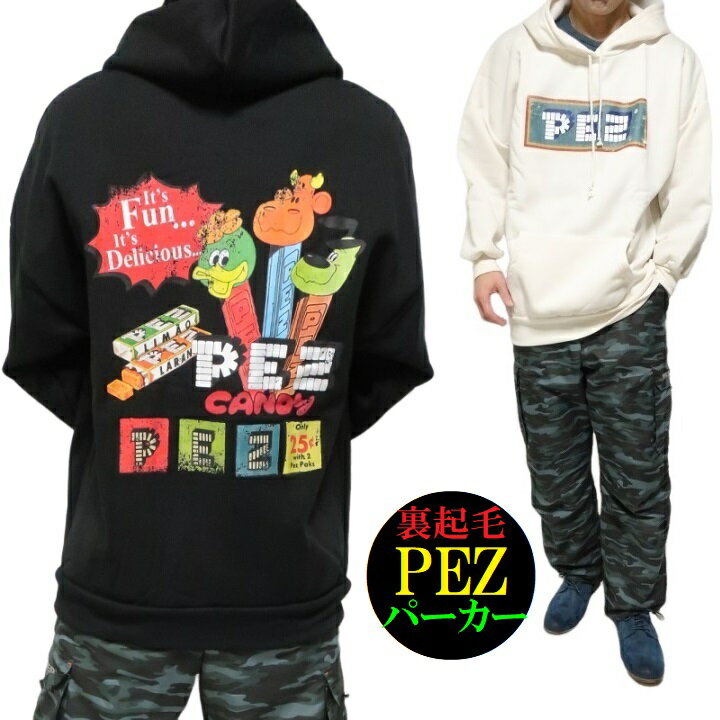 PEZ(ペッツ) パーカー プルオーバー 裏起毛 厚手 服 グッズ オーバーサイズ メンズ レディース ユニセックス 通販 メンズファッション トップス 正規ライセンス ブラック/アイボリー サイズM