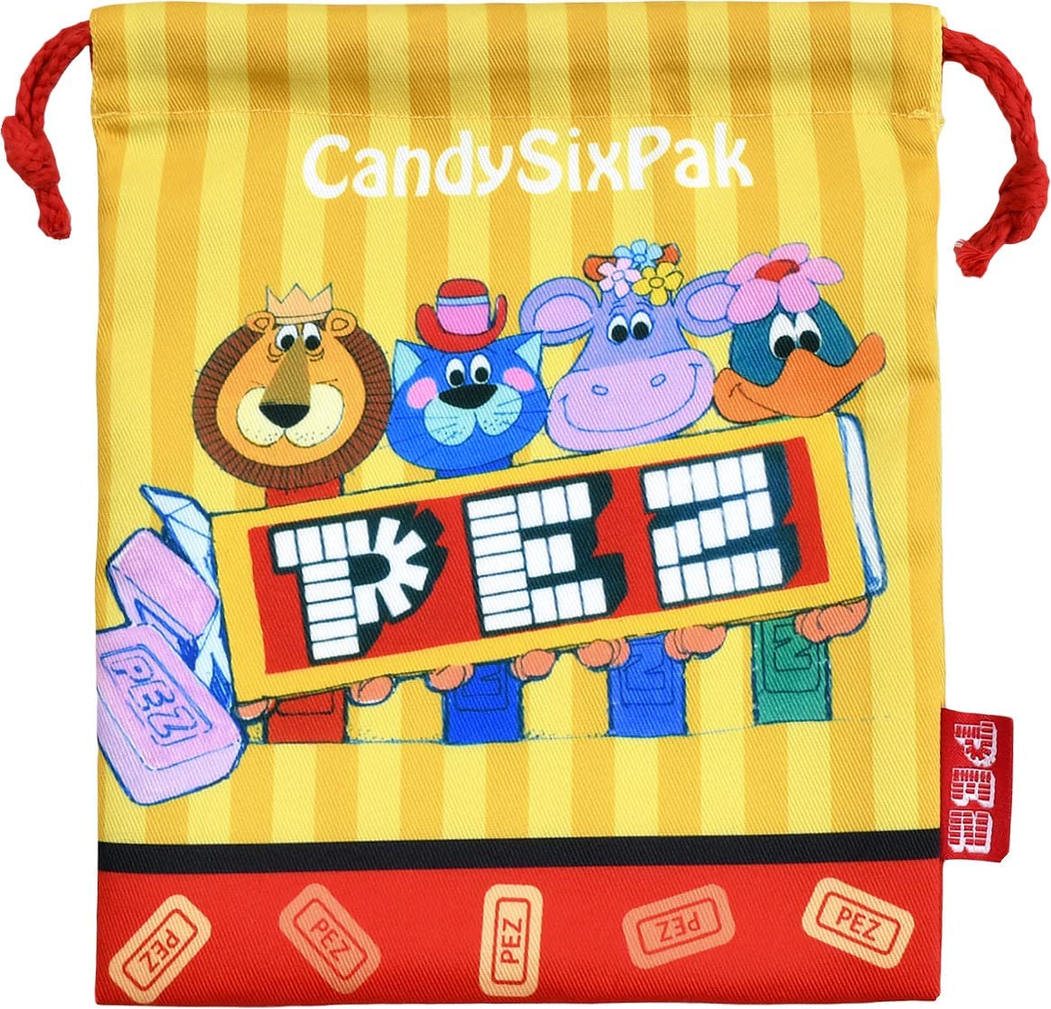 キャラクター 巾着袋 ( きんちゃく袋 ) ペッツ( PEZ )( イエロー 系 ) ( サイズ 約290×165×マチ120mm )( キャンディ お菓子 ペパーミント うさぎ 動物 イエロー 黄色 袋 巾着ポーチ きんちゃく キッズ ) 【メール便OK】