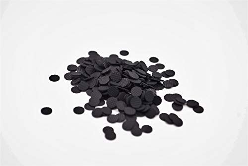 【数量】1袋 100個以上入っております。細かい製品のためスプーンひとすくいを基準としております。(数量約100個から200個)【サイズ】直径5 厚さ0.5〜0.6 両面に格子状の溝が小さく彫られています。【用途】導電性を持つゴム(カーボン入り)で出来ております。リモコンのゴムボタンシートの裏面についている黒いゴム部品になります。古くなった導電性ゴムの乗せ換えにご利用ください。【利用方法】接着する場合は、シリコンやゴム製品専用の両面テープまたは接着剤をご利用ください。