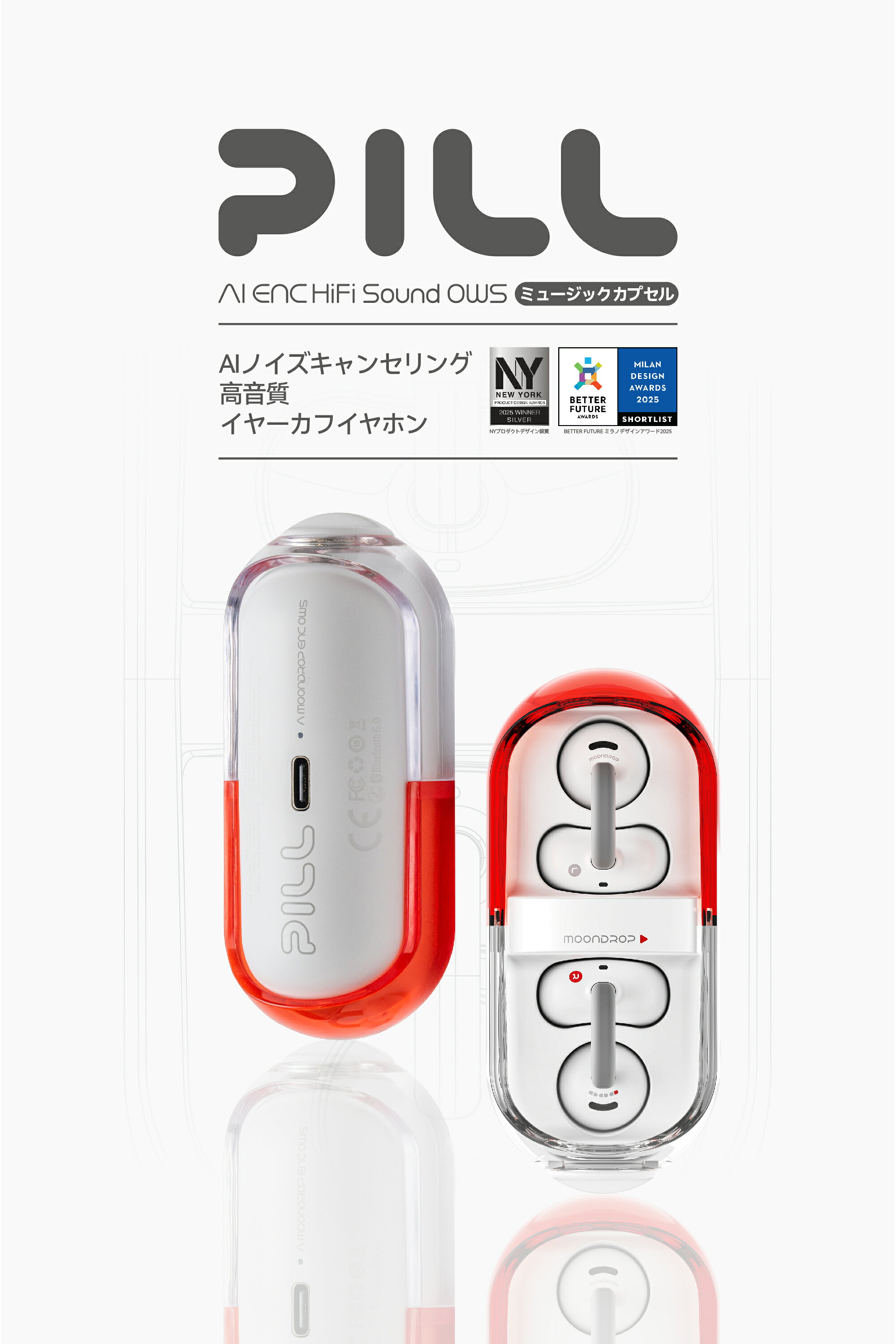水月雨 Moondrop Pill セット 止旋ロック&ストラップ付き オープンイヤー型ワイヤレスイヤホン イヤーカフ イヤホン オープンイヤー ワイヤレス Bluetooth 6.0 開放型 耳挟み式 【IPX4防水 / 最大28時間再生 / AIノイズキャンセリング 】