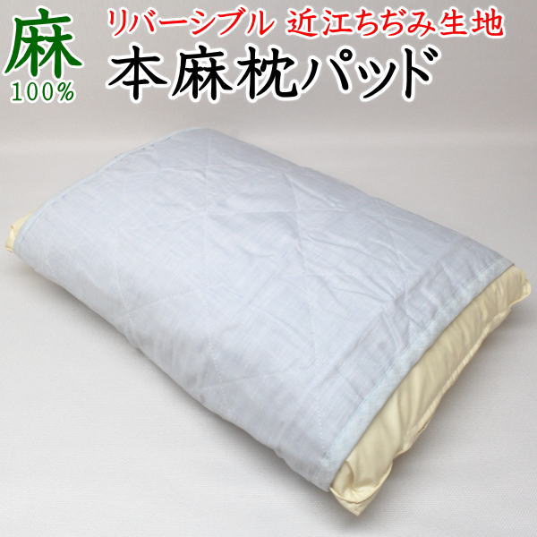 麻100% リバーシブル 近江ちぢみ生地 本麻枕パッド 【関連ワード ピローパッド 枕シーツ 枕カバー 麻パッド 近江縮 近江ちぢみ パット 頭寒足熱 汗取りパッド 接触冷感 ヒンヤリ 冷たい マクラ まくら クール Pillow pad】