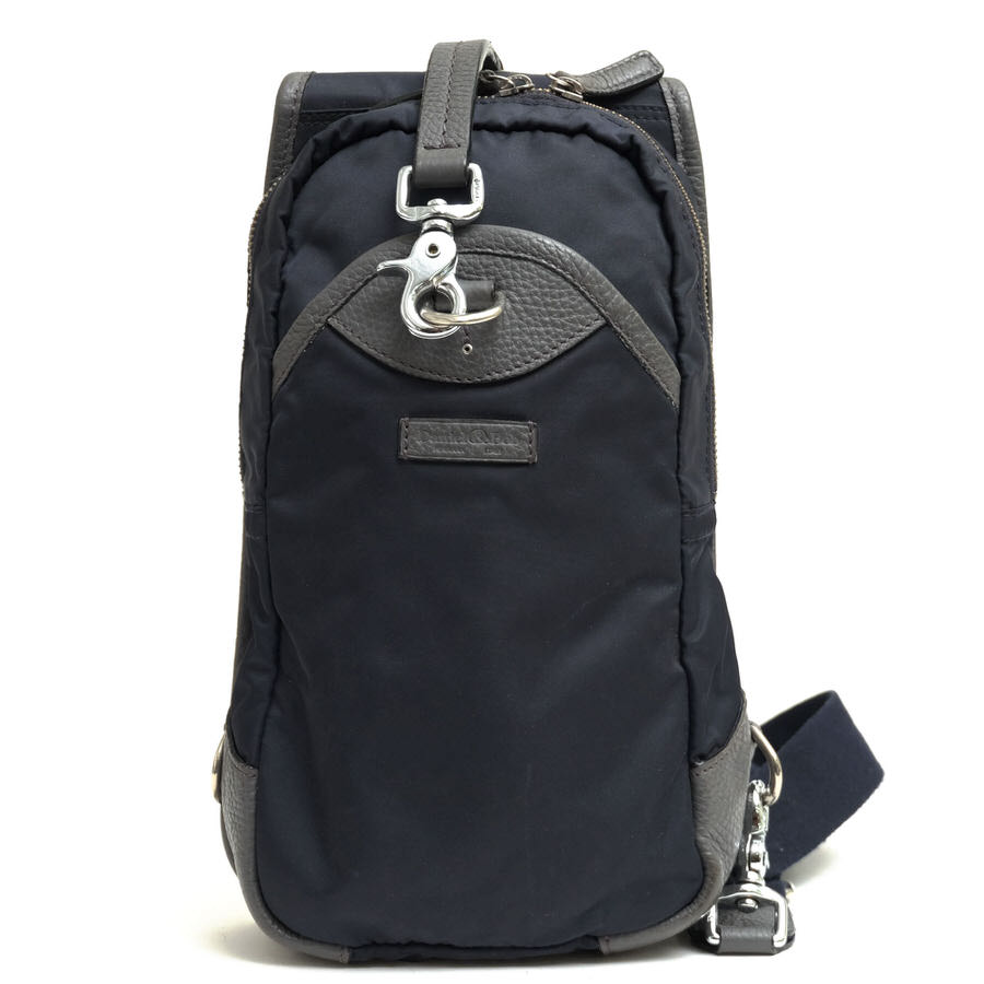 BRANDINGの全商品で利用可↓↓1%OFFクーポン↓↓Daniel&Bob / ダニエル&ボブDaniel&Bob ダニエル&ボブ ショルダーバッグ PIPPO DAVIS ピッポ 伊リモンタ社ナイロン商品説明デイリーライフを豊かにする上質なレザーグッズとして、ヨーロッパの本物志向の人々から熱狂的に支持されている Daniel&Bob (ダニエル&ボブ)は1976年、Andrea Bortolotti(アンドレア ボルトロッティ)氏らによりイタリア フェラーラで創業されました。Daniel&Bob の高い品質は、職人の手による細部に至るまでの丁寧な仕事によって支えられ、年月を重ねるごとに味わいが深まるモノとなります。そのクラフツマンシップを象徴するのが、バッグにとって命ともいえるハンドルです。Daniel&Bob の一切芯地を使わない三層のレザーを手縫いで仕上げた肉厚のハンドルは、ジルハンドルと呼ばれ、握ると手にじっくりとなじむよう計算されており、その機能がデザインとなり独自のフォルムを有します。この独特のハンドルの手ざわりは握るたびに感じ取れる品質の証です。イタリアのモノづくりの伝統に根ざした高い技術の蓄積こそが、自由でクリエィティブな Daniel&Bob のデザインを具現化します。耐久性のリモンタ社ナイロンで仕上げられ、爽やかなカラーリングで軽量ながら上品な印象。デザイン性の高さだけではなく、ストラップの位置を変えることでショルダーバッグにしても利用でき、程よいサイジングで整理し易いポケット付きでデイリーユースにご愛用頂けます。商品詳細◆ブランド名 Daniel&Bob◆サイズ詳細 横幅 約19cm 縦幅 約39cm マチ 約7.5cm ショルダー長さ 約110cm◆仕様 ポケット×2◆特徴 スリングバッグ ボディバッグ◆型番 PIPPO DAVIS ピッポ◆生産国 イタリア◆素材 上質なナイロン×革レザー◆素材詳細 伊リモンタ社ナイロン◆色 ネイビー 紺◆商品状態 中古品-良い