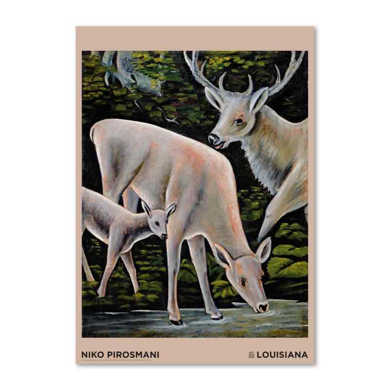 デンマーク ルイジアナ近代美術館 ポスター Niko Pirosmani – Three Deer by a Stream A1 59.4×84.1cm