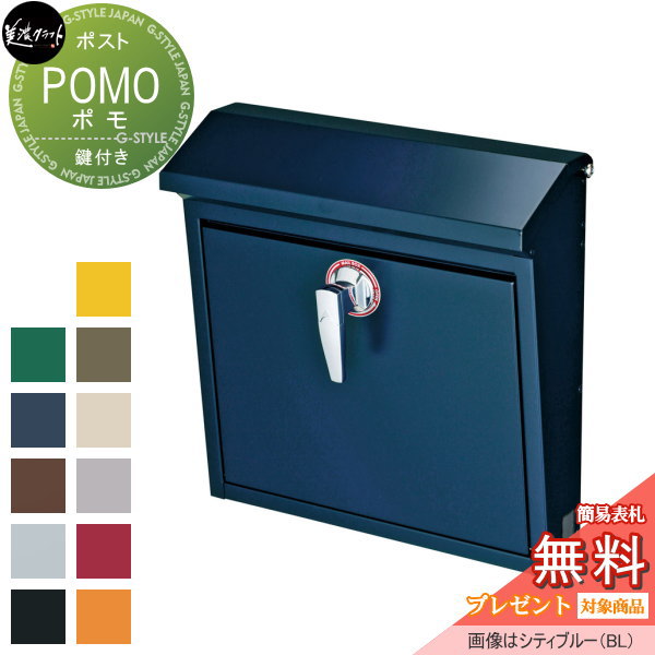 美濃クラフト 郵便ポスト POMO ポモ POM-CB シティブルー色 鍵付き