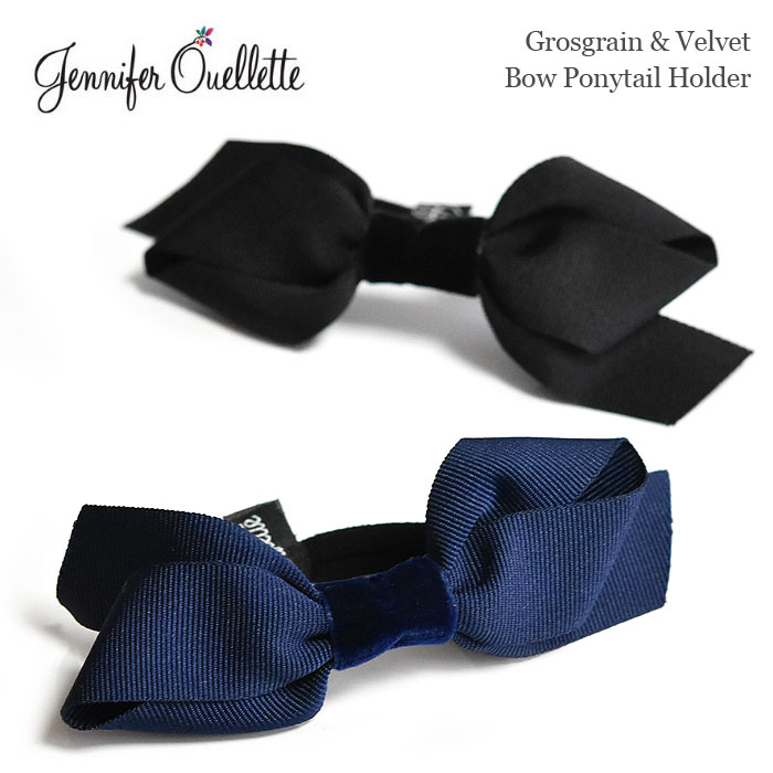 【待望の最新作】≪Jennifer Ouellette≫ ジェニファー オーレット 全2色 グログラン 異素材 ミックス ベロアベルベット リボン ヘアゴム ブラック 黒 ネイビー 紺 Grosgrain & Velvet Bow Ponytail Holder レディース ギフト ラッピング