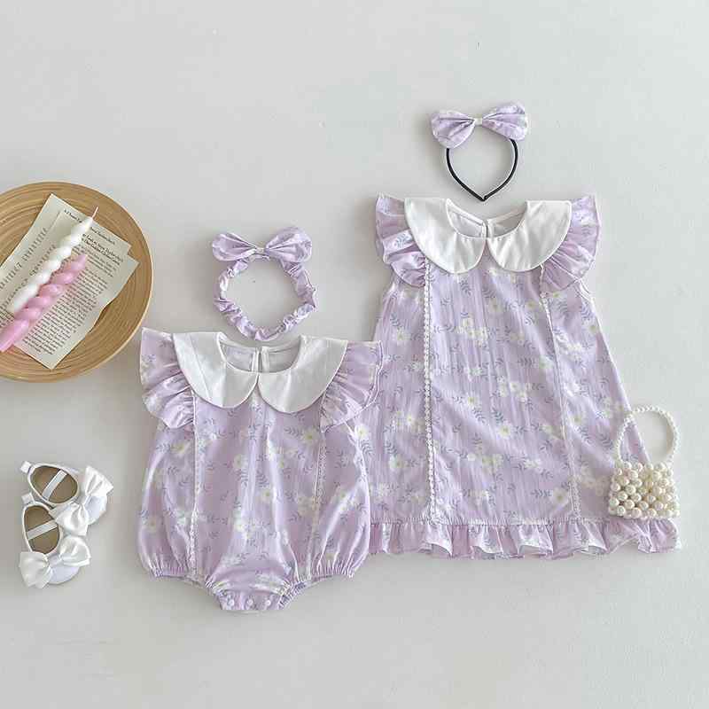 ベビー 女の子 ワンピース ロンパース Aライン 付け襟 レース 姉妹コーデ リンクコーデ 夏 綿 コットン 普段使い お出かけ おしゃれ かわいい