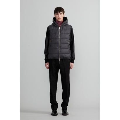 ■PONZAのその他の取扱い店舗はをご参照ください。◇外国人モデル:身長185cm / モデル着用サイズ48/L【DUVETICA × giabsarchivioコラボレーションモデル】イタリアの人気トラウザーブランド「giabsarchivio(ジャブスアルキヴィオ)」とDUVETICAのコラボレーションによって誕生したダウンベストの「PONZA(ポンツァ)」。ジャブスアルキヴィオが得意とする機能性と洗練された素材使いに、DUVETICAならではの高いダウンウェア技術を融合し、クラシカルなダウンベストの美学を現代的に再構築した1着です。空気を含んだふんわりとしたボリューム感と、イタリアブランドらしい都会的なムードが共存。快適さと洗練を兼ね備えた、モダンなベストとして、秋冬のリュクス&クラシックなスタイルに上質なアクセントを加えます。【デザイン】・フルジップアップデザインフードトップまで続くダブルファスナー仕様のフルジップアップデザインは、DUVETICAを象徴するブランドアイコンのひとつです。・メタリックゴールドのファスナーイタリア製LAMPO社のダブルメタリックゴールドファスナーをフロント及びポケットに採用。金属製エレメントならではの重厚な輝きが、ダウンの素材感と調和し、洗練された印象を引き立てます。ゴールド調のカラーリングで、主張しすぎず上質さをプラス。なめらかな開閉で着脱ストレスを軽減。上下開閉できる仕様により、スタイリングの幅も広がります。・ミニマルな立体構造袖を排したベストスタイルながらも、しっかりとボリュームのあるボーダーキルトデザイン。ダウンの膨らみが美しく、体にフィットしすぎず、スマートな印象を与えます。・フード一体型デザイン高めに設計されたネックラインと一体型フードにより、首元までしっかりと保温。立体的なシルエットが顔まわりを引き締め、スタイリッシュな印象に。【テキスタイル素材】・表素材:ストレッチウールジャブスアルキヴィオが得意とする、軽量で上品な風合いのストレッチウールを採用。しなやかな弾力性とクラシックな趣を備え、軽やかな着心地とともに、装いに上質な印象を添えます。・裏素材:マットナイロン(微撥水性)柔らかな肌触りのマットなブラックナイロンライニングが、さりげないラグジュアリー感を演出。【ダウン素材】ピュアグースダウンの称号を冠する希少なフランス産グレイグースダウンを贅沢に使用。ダウンボール90%、フェザー10%という黄金比率により、軽さ・保温性・復元力のすべてにおいて高い水準を誇ります。着心地は驚くほど軽やかで、寒冷地にも対応できる暖かさを実現しました。素材選びから製造まで、徹底した品質管理のもとで仕上げています。※詳しくはをご参照ください。【カラーバリエーション】・ASFALTO MELANGE(938):グレー・NERO(999):ブラック・ASFALTO MELANGE(938):グレー「ASFALTO MELANGE(アスファルト・メランジ)」は、都市の舗装道路を思わせる『アスファルト』を想起させる濃厚で奥行きあるチャコールグレーに、メランジ(杢調)ならではの繊細な色ムラと表情を加えた、深みと渋みを兼ね備えたシックなグレートーンです。単色のグレーにはない立体感が特徴で、光の加減や角度により微妙に異なるニュアンスを見せるため、シンプルながらも印象に残る素材感を演出。無機質な都会的グレーウールの温かみをもたせた色合いで、カジュアルからドレス寄りのスタイルまで幅広く対応可能です。※本製品には正規輸入品であることを証明する“F.E.N. Official Card”が付属しております。修理などのアフターケアサービスをご依頼の際は、このカードの提示が必要となりますので、大切に保管頂けますようお願い致します。詳しくはカードの裏面にある説明事項をご参照ください。※端末のモニター環境により、画像の色味が異なって見える場合があります。予めご了承下さい。※完全防水ではございませんのでご注意ください。44/S : 【着丈】62cm / 【肩幅】41cm / 【胸囲】102cm46/M : 【重さ】610g / 【着丈】63.5cm / 【肩幅】42cm / 【胸囲】106cm48/L : 【着丈】65cm / 【肩幅】43cm / 【胸囲】110cm50/LL : 【着丈】66.5cm / 【肩幅】44.5cm / 【胸囲】114cm52/3L : 【着丈】68cm / 【肩幅】46cm / 【胸囲】118cm別カラーはこちら! ブラック(NERO)