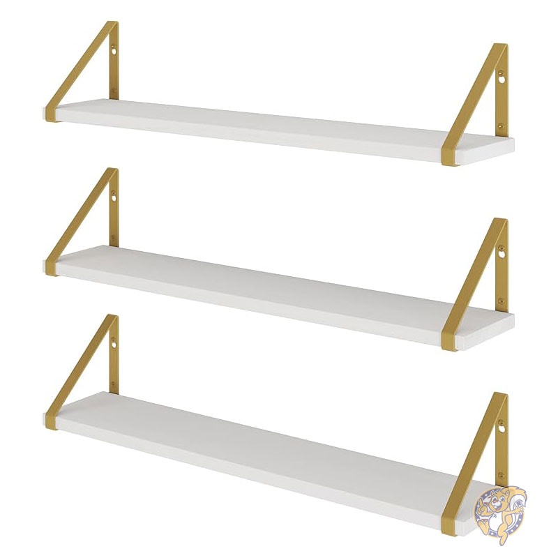 【最大2000円クーポン25日〜】フローティングシェルフ 壁用 取り付け棚 Ponza ホワイト 61cm シェルフ リビングルーム装飾 寝室 バスルーム ホームオフィス用 シェルフ ゴールドカラーブラケット付き Wallniture ウォールニチュア