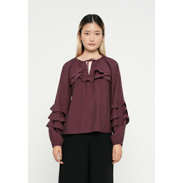 【送料無料】 トップショップ レディース Tシャツ トップス Topshop cupro off-shoulder ruched long sleeve top in plum Port royale