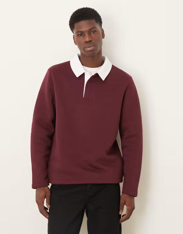 【送料無料】 エイソス メンズ パーカー・スウェット アウター ASOS DESIGN relaxed polo neck sweatshirt in burgundy Port royale