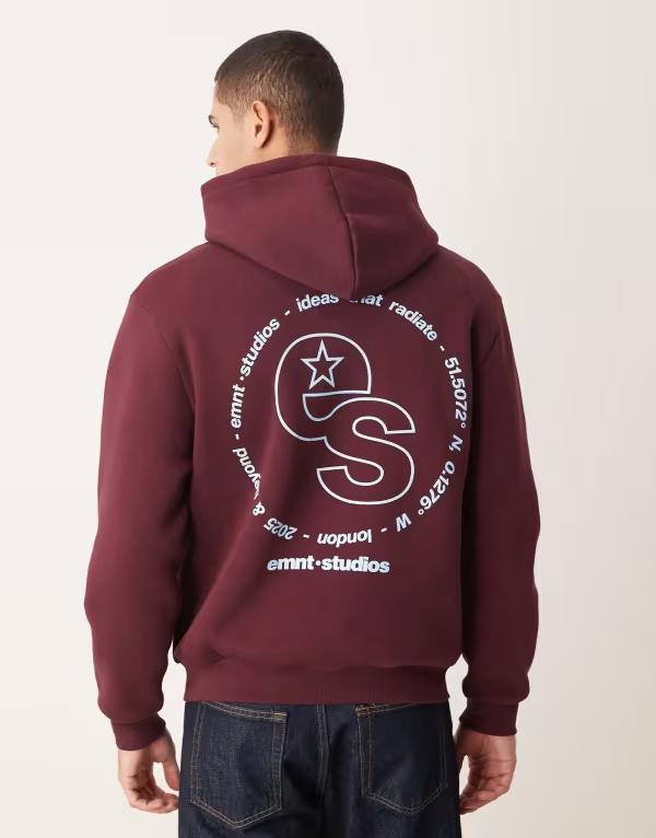 【送料無料】 エイソス メンズ パーカー・スウェット アウター ASOS DESIGN relaxed hoodie with logo back print in burgundy Port royale