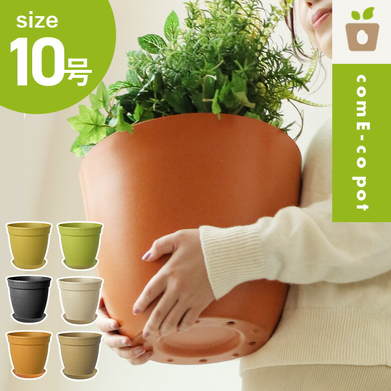 植木鉢 30cm おしゃれ 大型植木鉢 軽い 軽量 受け皿 受皿 鉢 屋外用 屋内用 丸型 鉢カバー レストラン 植栽 ガーデン プレゼント 環境にやさしい 送料無料 底穴有 コメ コメエコポット Come-co pot 10号 高さ24cm 受け皿付き