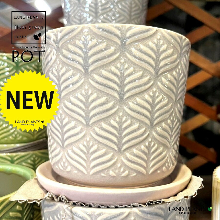葉模様の 幾何学 陶器鉢 ベージュ 1鉢 植木鉢 鉢 ポット POT